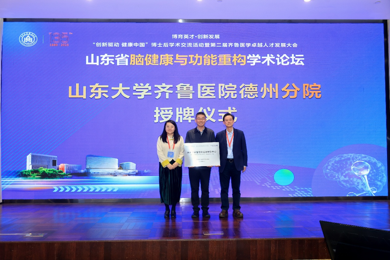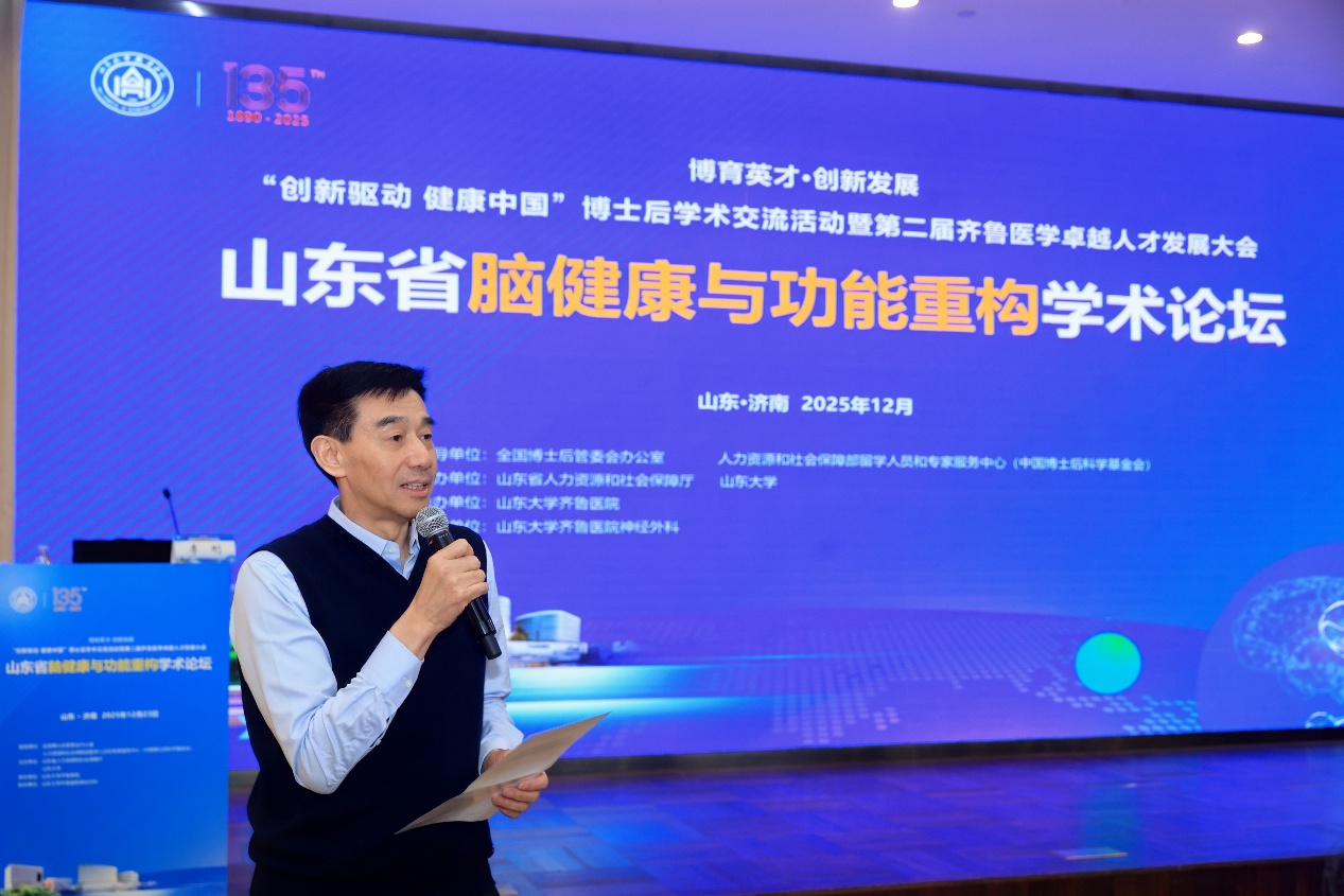 山东大学齐鲁医院在本月成功举办了“创新驱动 健康中国”全国博士后学术交流活动暨第二届齐鲁医学卓越人才发展大会与山东省脑健康与功能重构学术论坛。此次论坛汇聚了来自全国各地的医学专家、学者,聚焦神经调控、脑机接口、精准医学等前沿技术的临床应用与研究,为推动脑机接口技术的创新与转化提供了宝贵的学术交流平台。此次会议由山东省人力资源和社会保障厅与山东大学共同主办,山东大学齐鲁医院承办,山东大学齐鲁医院神经外科协办,进一步彰显了齐鲁医院神经外科在神经科学和医学技术领域的学术领导力。