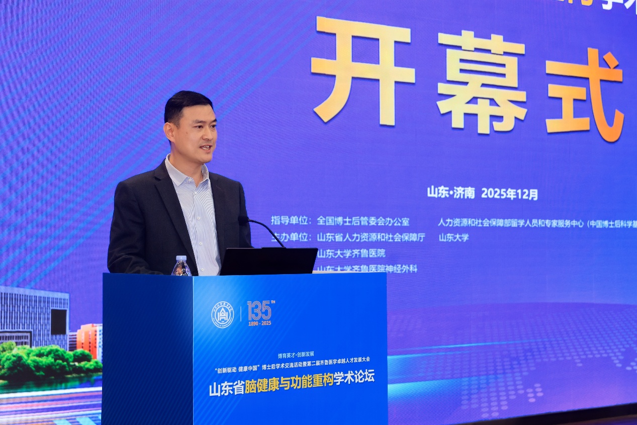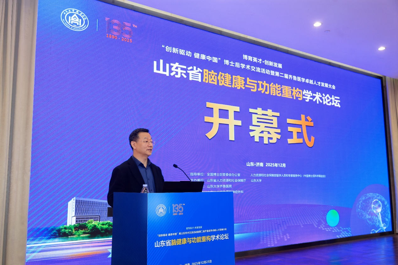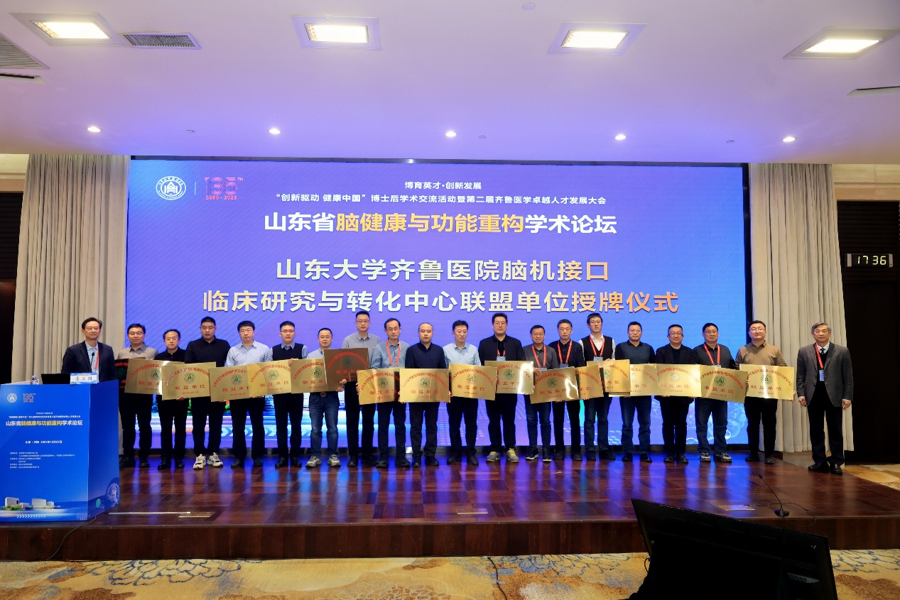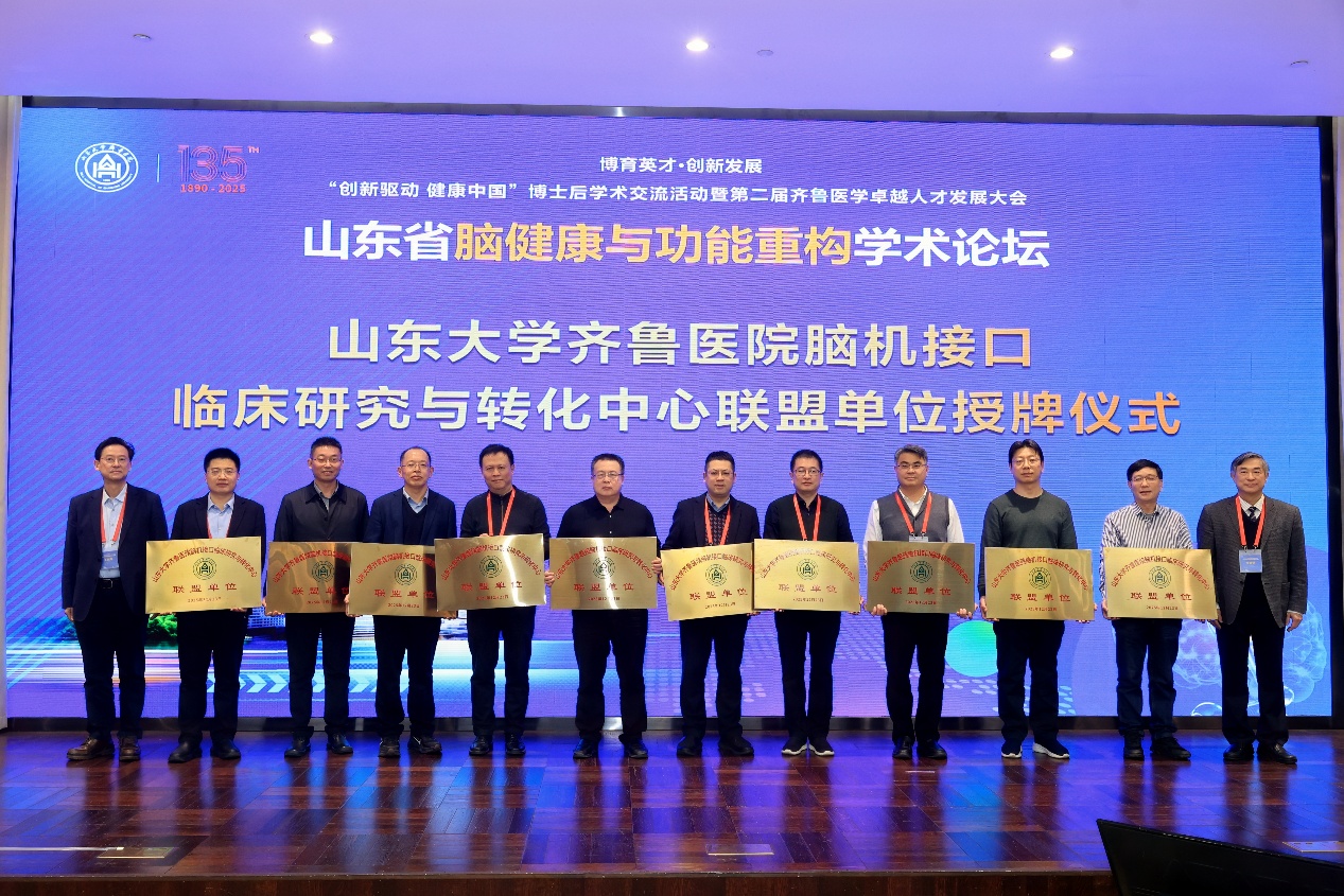 山东大学齐鲁医院在本月成功举办了“创新驱动 健康中国”全国博士后学术交流活动暨第二届齐鲁医学卓越人才发展大会与山东省脑健康与功能重构学术论坛。此次论坛汇聚了来自全国各地的医学专家、学者,聚焦神经调控、脑机接口、精准医学等前沿技术的临床应用与研究,为推动脑机接口技术的创新与转化提供了宝贵的学术交流平台。此次会议由山东省人力资源和社会保障厅与山东大学共同主办,山东大学齐鲁医院承办,山东大学齐鲁医院神经外科协办,进一步彰显了齐鲁医院神经外科在神经科学和医学技术领域的学术领导力。