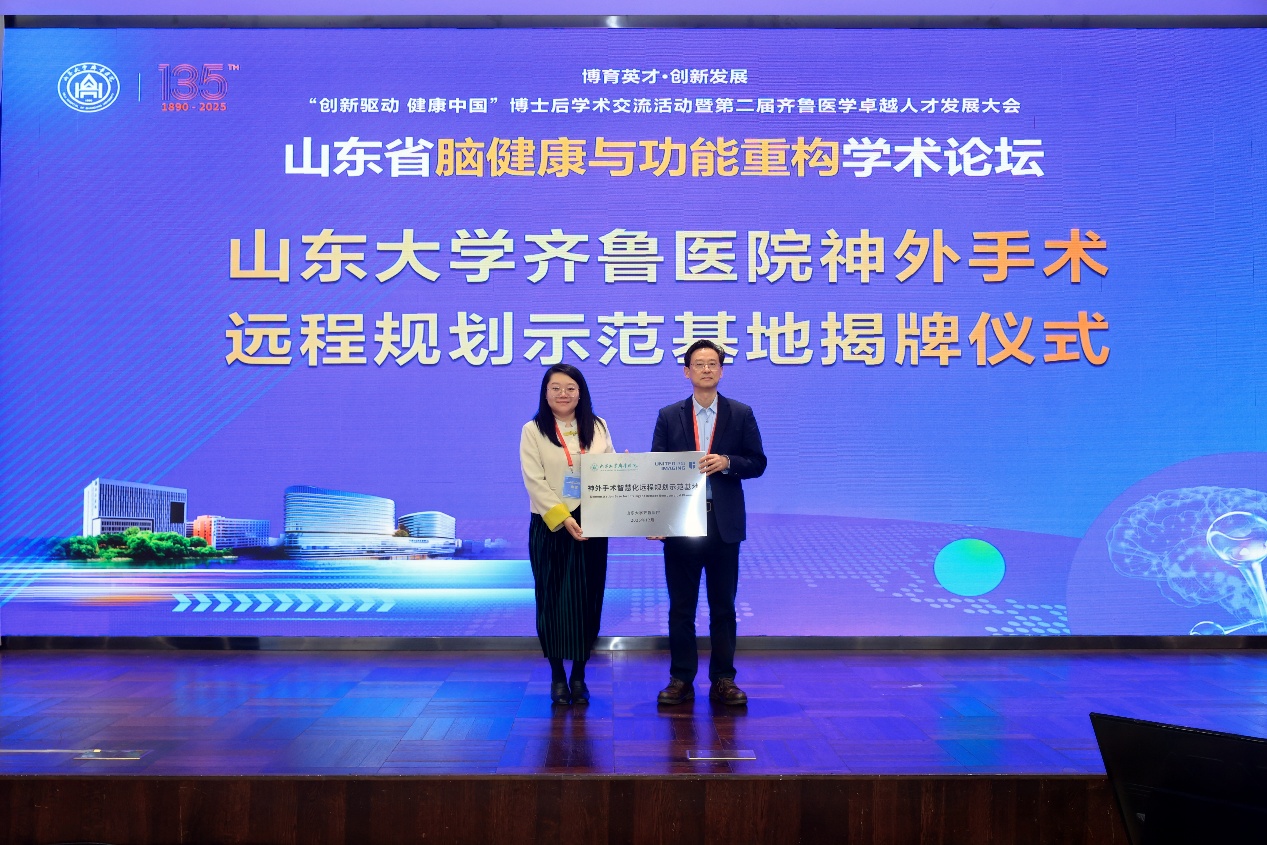 此外,山东大学齐鲁医院与联影医疗共同建立了“神外手术远程规划示范基地”,这一基地的建设将为患者提供更加精准、个性化的治疗方案,进一步提升医院在神经外科手术领域的领先地位。同时,山东大学齐鲁医院德州分院获得了“神外手术远程规划中心”授牌,标志着德州分院在智慧医疗与远程医疗领域取得了重要突破。