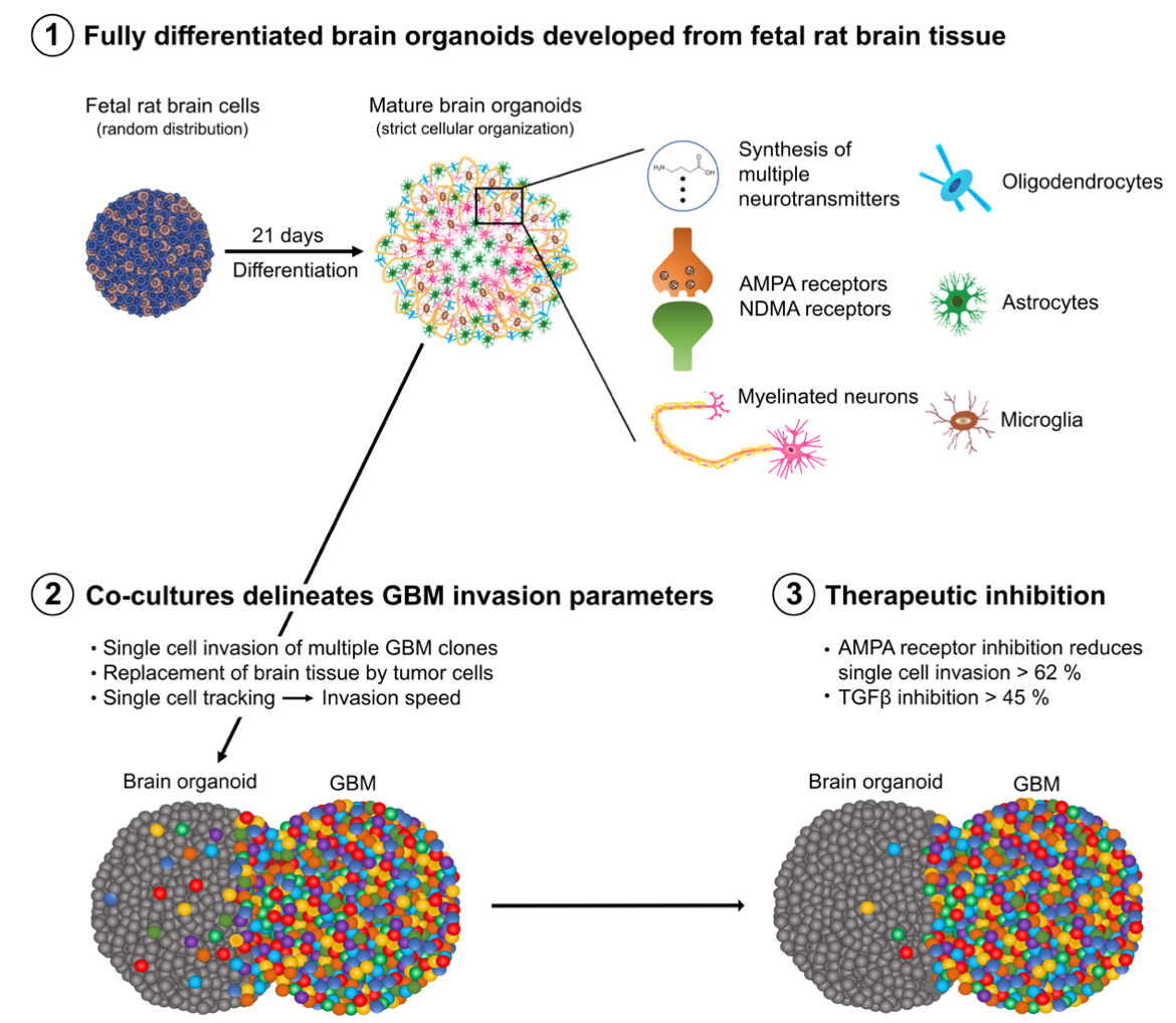 该类脑器官模和人大脑生理相关性强,可高通量、高重复性、低费用构建,不仅克服了现有模型的局限性,为深入探究胶质瘤侵袭机制提供了强大工具,也为快速评估抗侵袭新疗法、推动神经肿瘤学精准治疗研究开辟了新路径。
